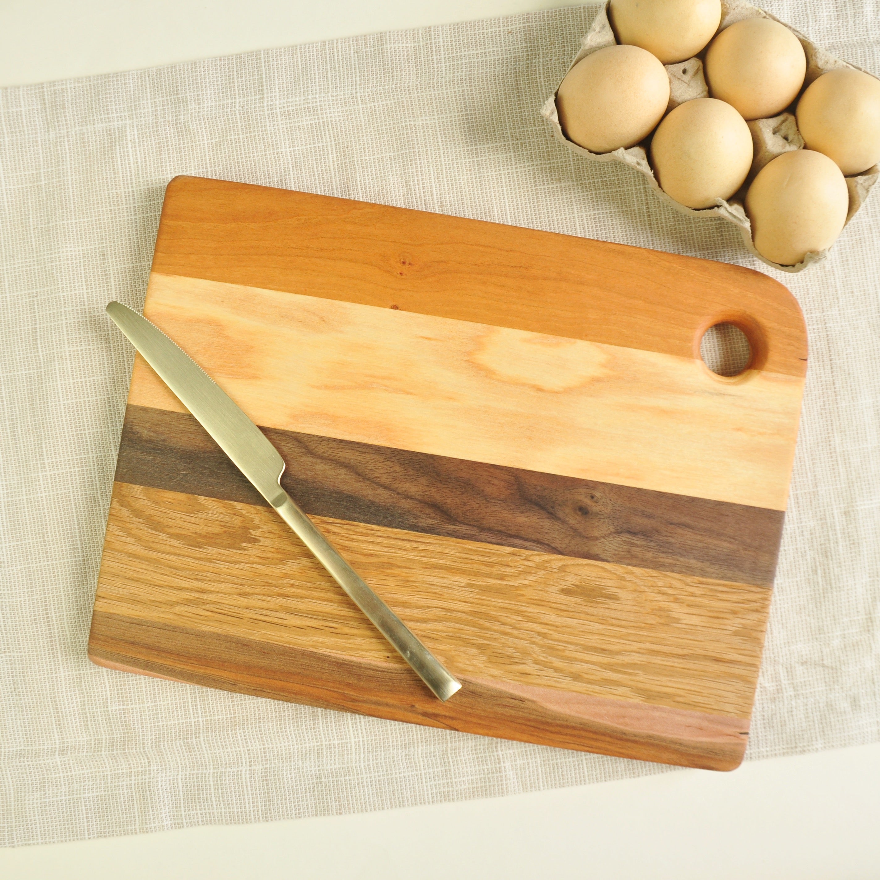 From chopping up your garden veggies to serving food on, this versatile handmade cutting can have many uses in your kitchen. The. size is perfect for small chopping jobs! The thumb hole makes for easing moving as well as hanging.