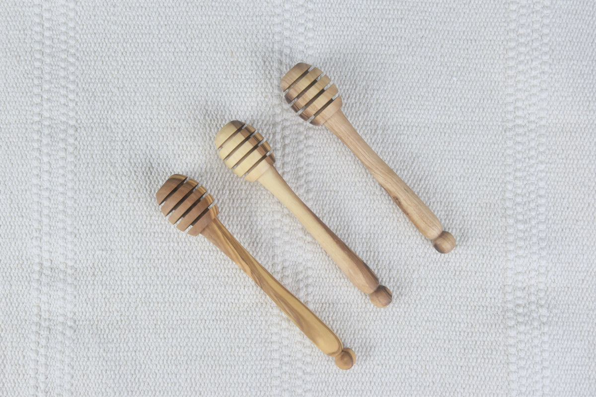 Drizzle honey with elegance using a handmade olive wood honey dipper. Crafted from premium Tunisian olive wood, its grooved head releases honey smoothly and evenly.