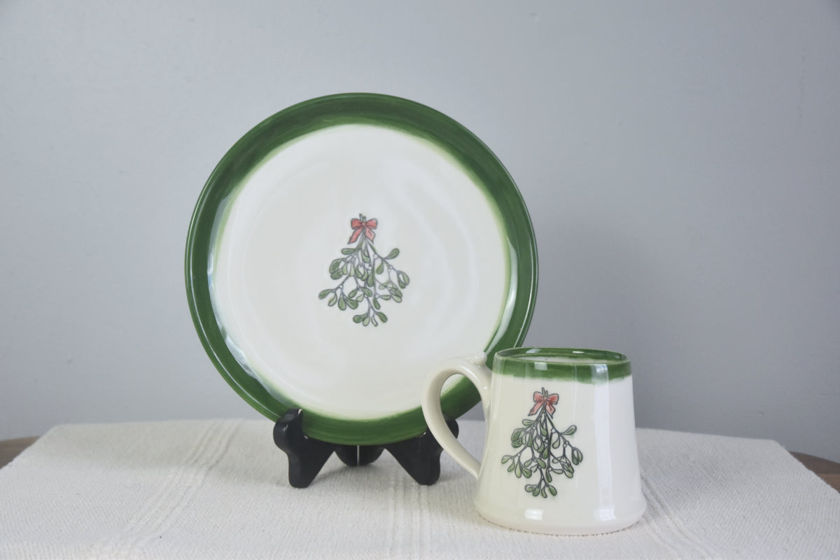 This is part of a 3-piece collection: Mistletoe Mug, Mistletoe Plate & Mistletoe Ornament