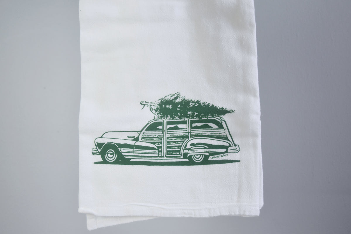 A classic holiday tradition, put on a towel to remember all the Christmases of taking your tree home.
