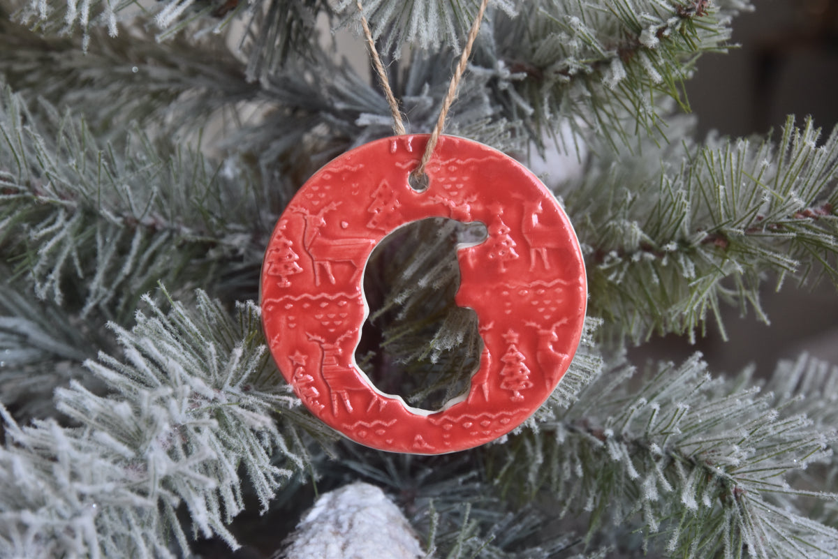 These ornaments were made with hand rolled slabs of clay which are then textured, cut, cleaned & glazed by hand. These are breakable and must be treated & stored with care. Available colors are listed, and we are unfortunately unable to fullfil any requests for alternative colors.