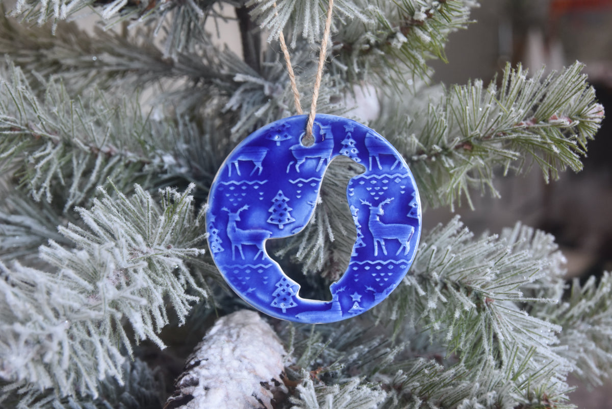 These ornaments were made with hand rolled slabs of clay which are then textured, cut, cleaned & glazed by hand. These are breakable and must be treated & stored with care. Available colors are listed, and we are unfortunately unable to fullfil any requests for alternative colors.