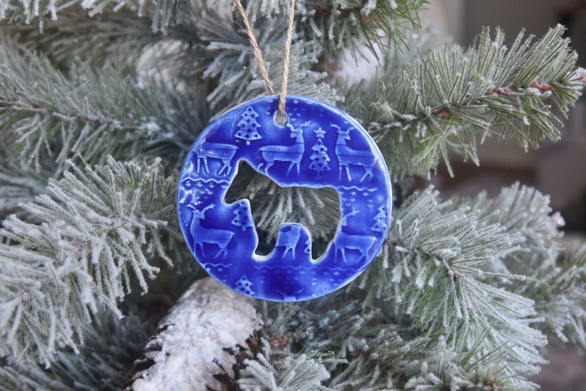 These ornaments were made with hand rolled slabs of clay which are then textured, cut, cleaned & glazed by hand. These are breakable and must be treated & stored with care. Available colors are listed, and we are unfortunately unable to fullfil any requests for alternative colors.