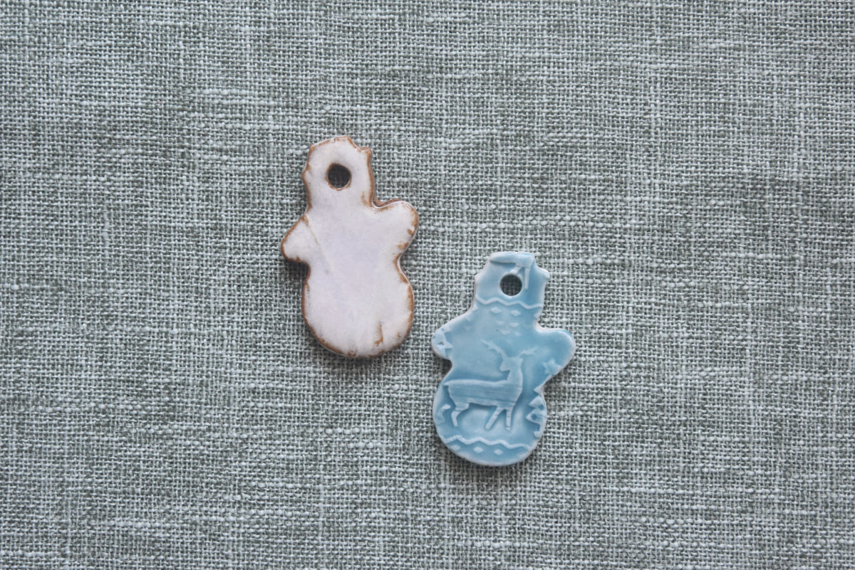 These ornaments were made with hand rolled slabs of clay which are then textured, cut, cleaned & glazed by hand. These are breakable and must be treated & stored with care. Available colors are listed, and we are unfortunately unable to fulfil any requests for alternative colors.