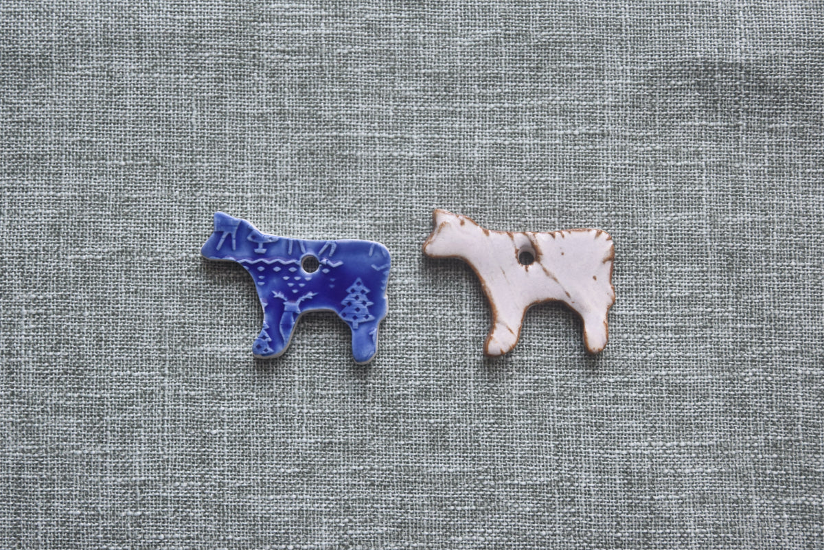 These ornaments were made with hand rolled slabs of clay which are then textured, cut, cleaned & glazed by hand. These are breakable and must be treated & stored with care. Available colors are listed, and we are unfortunately unable to fullfil any requests for alternative colors.
